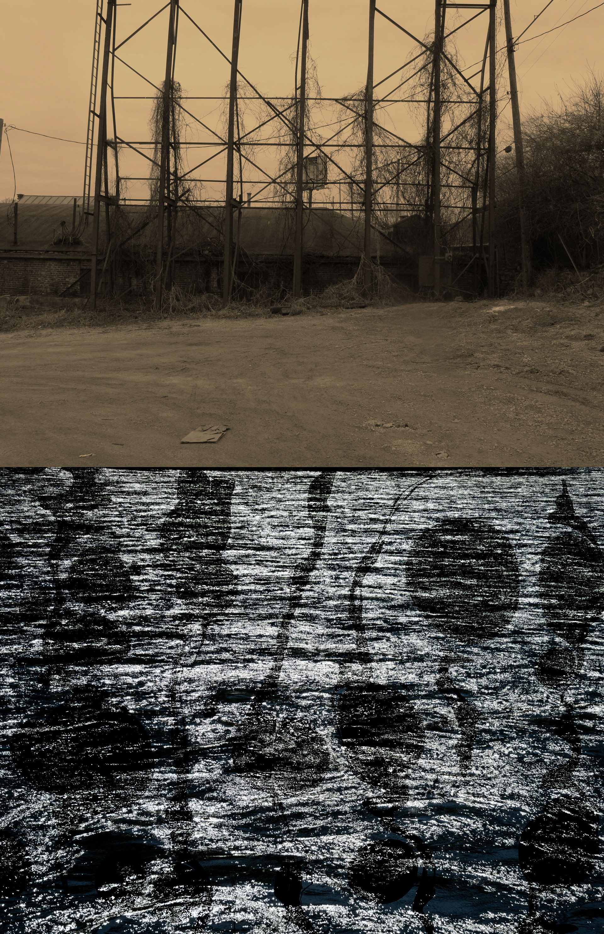 Not collage, but forcing yourself to see two sources together. Is it a jump cut, a collision, between two voices or places. A breach of conventional meaning and narrative. A blunt force collage. We're over saturated with images. Scrolling, scrolling, but stomp the brakes. Two images together, neither one or the other. Where does that go? Where do you go? These are some of the orchestrations I'm working on for an upcoming art show.